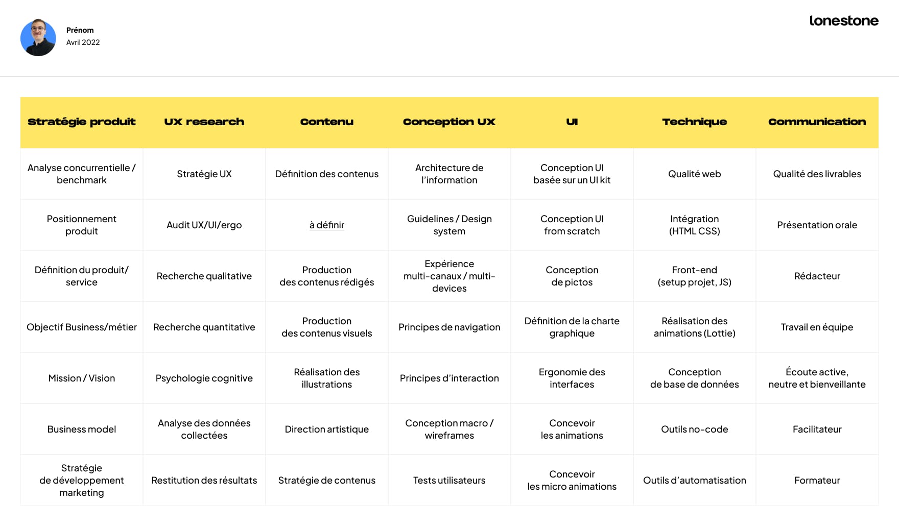 - J’ai du recul sur les processus de recrutement (pas uniquement chez Lonestone, mais de l’état de l’art). Je peux analyser et challenger les méthodos pour les améliorer, je participe à l’amélioration continue de nos méthodes