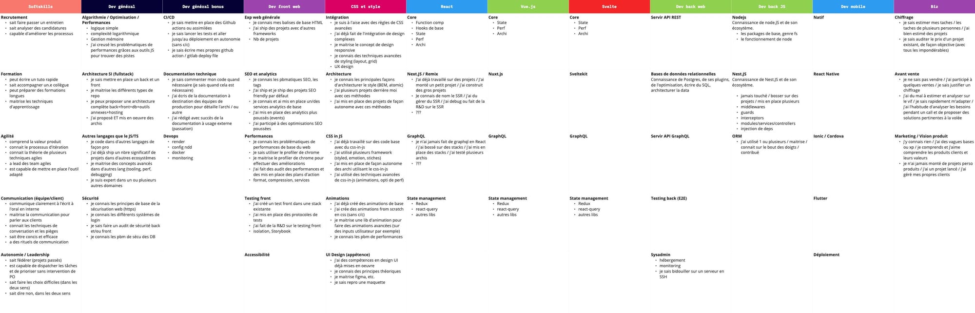 Prenons les compétences techniques – les hard skills – d'un développeur fullstack. À priori les plus simples à lister et à mesurer (ou pas).