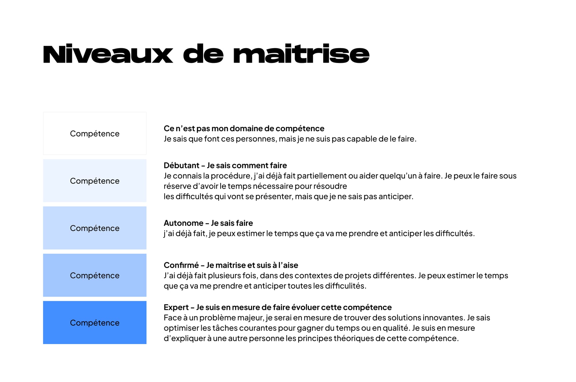 - Expert - Je suis en mesure de faire évoluer cette compétence